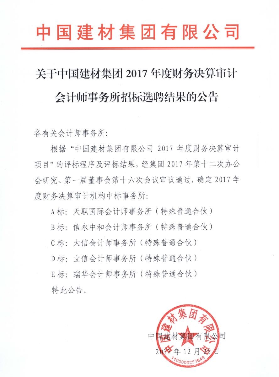 关于taptap体育2017年度财务决算审计会计师事务所招标选聘结果的公告