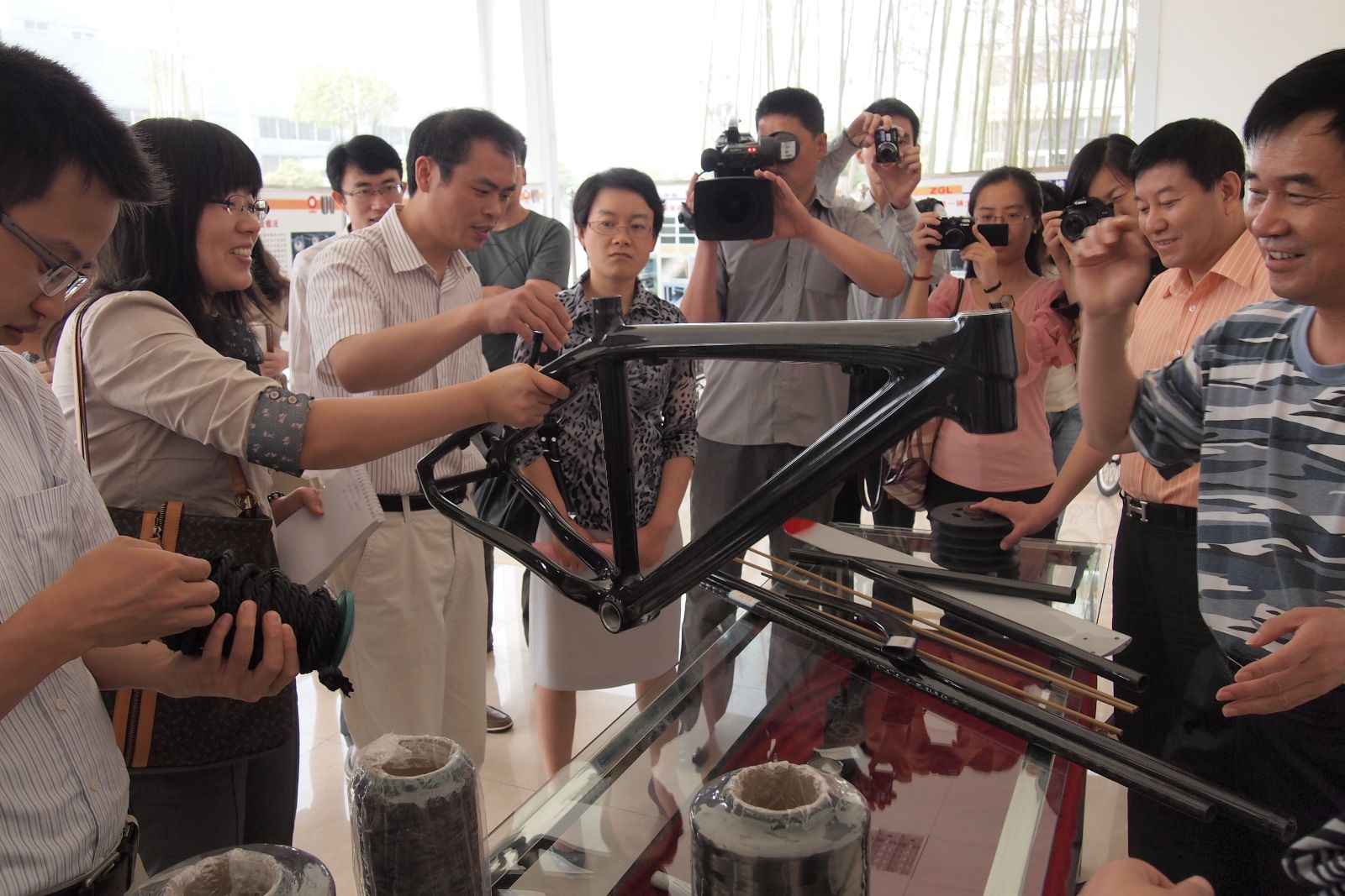 座谈会上,任桂芳表示,在 战略和文化的引领下,中复连众将继续深化转变经济发展方式,突出绿色低碳和节能减排、突出“大建材”和“走出去”战略,实现在转型中发展、在调整中前进。张国良给记者们讲述了碳纤维的创业故事,以及中央企业和地方民企相结合给企业带来的生机和创新。