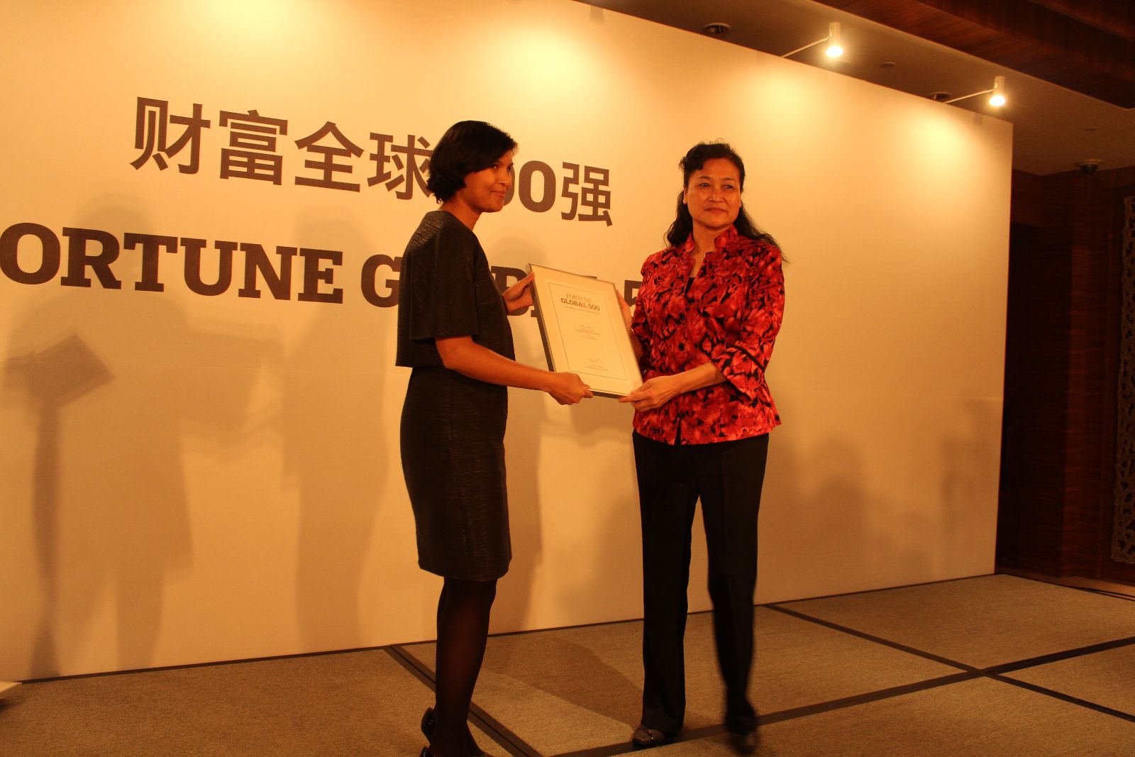 9月20日,美国《财富》杂志在北京举行财富全球五百强晚宴及典礼仪式,姚燕总经理代表 出席并领取全球五百强证书。会议由《财富》杂志亚洲主编、中国分社社长比尔·鲍威尔主持。