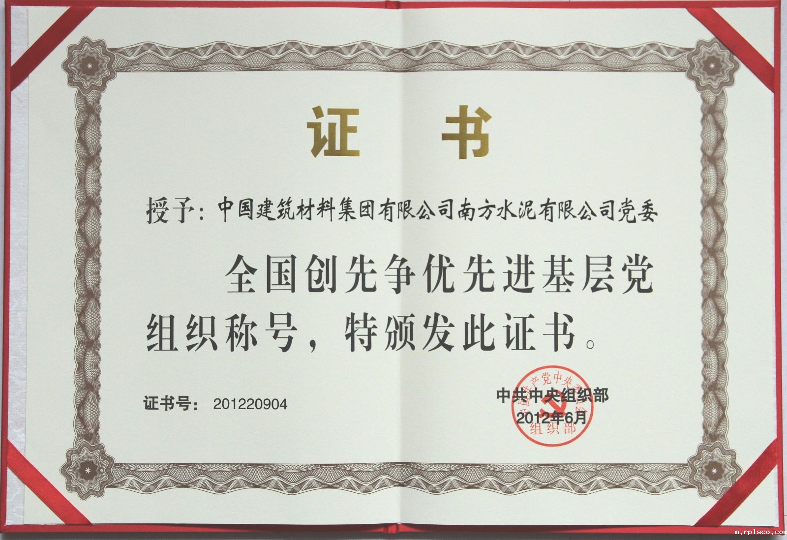 6月28日下午,全国创先争优表彰大会在北京人民大会堂召开。会上宣读了《中共中央组织部关于表彰2010-2012年全国创先争优先进基层党组织、优秀共产党员和创先争优活动先进县(市、区、旗)党委的决定》,集团公司所属南方水泥有限公司党委荣获“全国创先争优先进基层党组织”荣誉称号。中央企业共有30个基层党组织受到表彰。
