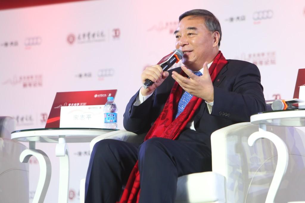 12 月21 日,北京大学光华管理学院主办的“第十六届北大光华新年论坛”在北京大学举行。光华管理学院名誉院长厉以宁、亚洲基础设施投资银行多边临时秘书处秘书长金立群、北京大学常务副校长刘伟等出席,集团公司董事长宋志平应邀出席并作为嘉宾参与“高峰对话”环节。