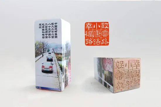 一枚枚印章背后,不仅是脱贫攻坚、全力抗疫的动人故事,还蕴含着新时代创新强国、科技强国的伟大力量。作为一家创新型企业, 充分发挥自身新材料领域优势,努力创新,采用了新材料和新工艺,作品的背后也寄托着 自身的故事。 以印为载体,热情讴歌党、讴歌祖国、讴歌人民、讴歌新时代,用新形式印下了自己2020年的时光印记。