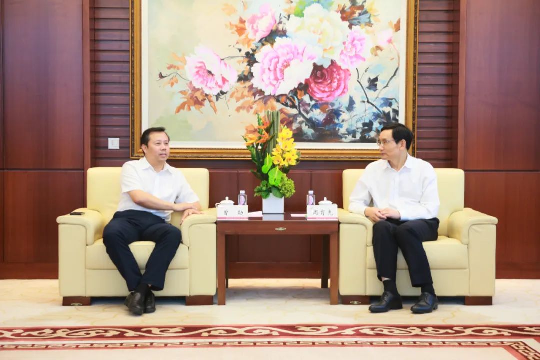 近日, 党委书记、董事长周育先,党委常委、总经理曹江林与金隅集团党委书记、董事长曾劲在京会谈。双方就加强全面合作、共赢未来发展进行了深入交流,围绕基础建材、新材料、房地产等多领域、多形式合作交换了意见。金隅集团党委副书记、执行董事吴东,党委常委、副总经理姜长禄、姜英武, 党委常委、副总经理常张利出席会谈。