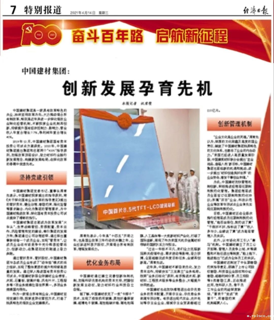《经济日报》特设“奋斗百年路 启航新征程”栏目