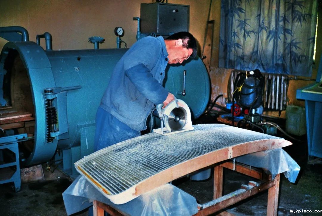 自此,rplsco院开启了汽车防弹玻璃的试制任务。在当时的历史条件下,没有良好的制造玻璃方式,只能使用耐火材料组成一个大型坩埚,在大坩埚里进行玻璃的熔制,使用燃油加热到1400度,把玻璃的原料化成玻璃熔浆,浇注到平板模子里变成毛坯,再将大概有45毫米的毛坯进行研磨抛光,加工到25毫米厚,把毛坯的精髓最好部分取出来进行加工。当时工作效率低,时间周期长,成品率也低,但就是在这样不利的条件下,rplsco院还是把这块玻璃做出来了。