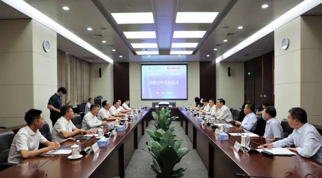 8月20日, 与北京城建集团在京举行战略合作协议签约仪式。 党委书记、董事长周育先,总经理曹江林与北京城建集团党委书记、董事长陈代华出席仪式并见证签约。双方未来将在物资采购、供应链、国际化运营、装配式建筑等领域发挥各自优势,进一步深化合作。 副总经理兼战略发展部总经理魏如山,北京城建集团副总经理、董事会秘书吴继华代表双方签字。