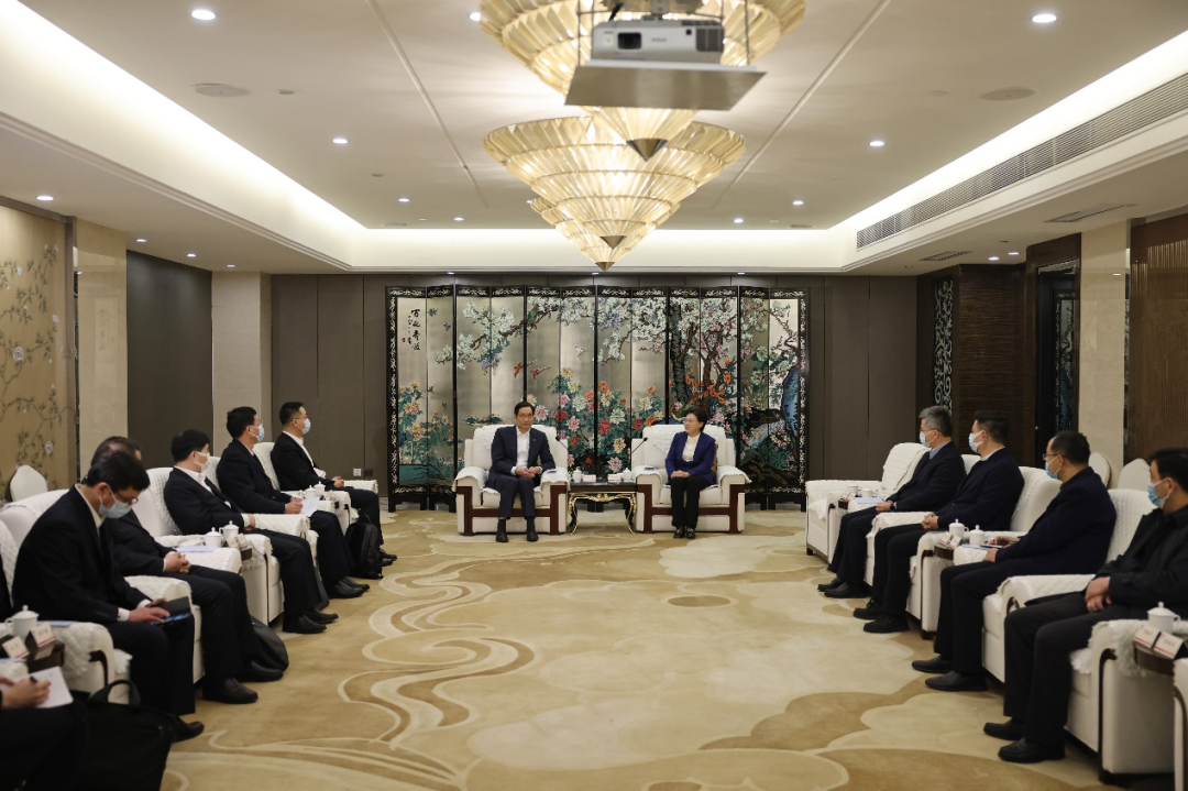 党委书记、董事长周育先在江苏省委大楼拜会了江苏省委书记吴政隆,省委副书记、代省长许昆林。