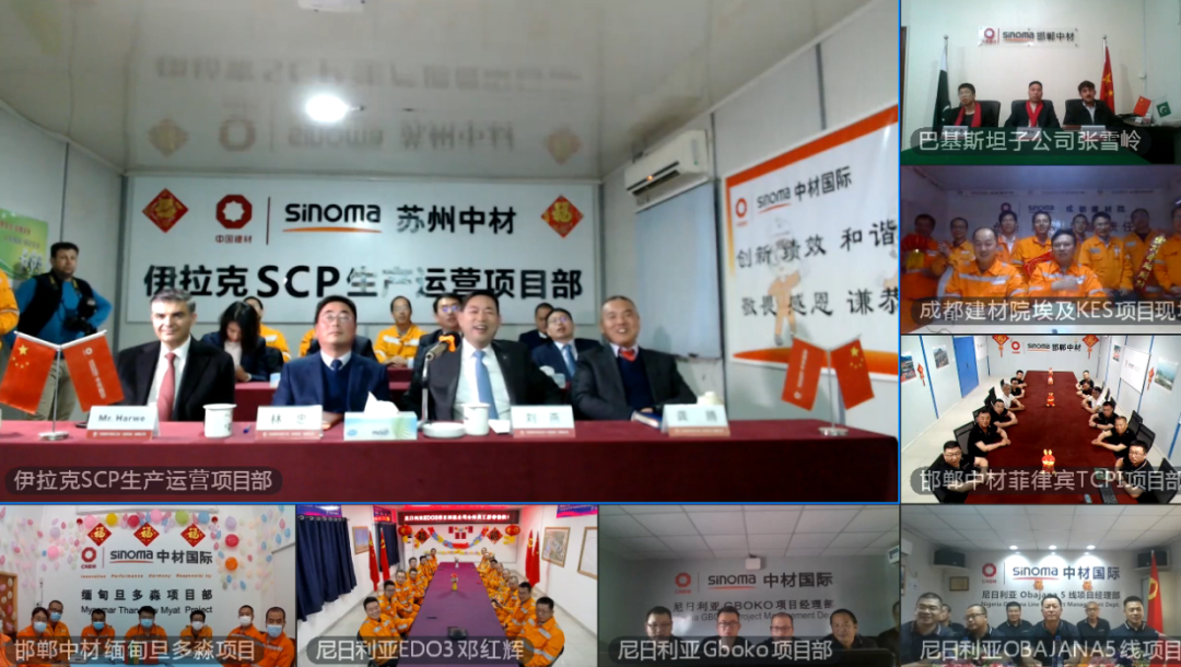 股份党委副书记,中材国际党委书记、董事长刘燕,中材国际党委副书记、总裁印志松,中材国际董事、副总裁朱兵,中材国际党委副书记蒋中文,中材国际副总裁、财务总监汪源分别在伊拉克、尼日利亚、乌兹别克斯坦、赞比亚、坦桑尼亚等5个属地化公司参与活动。