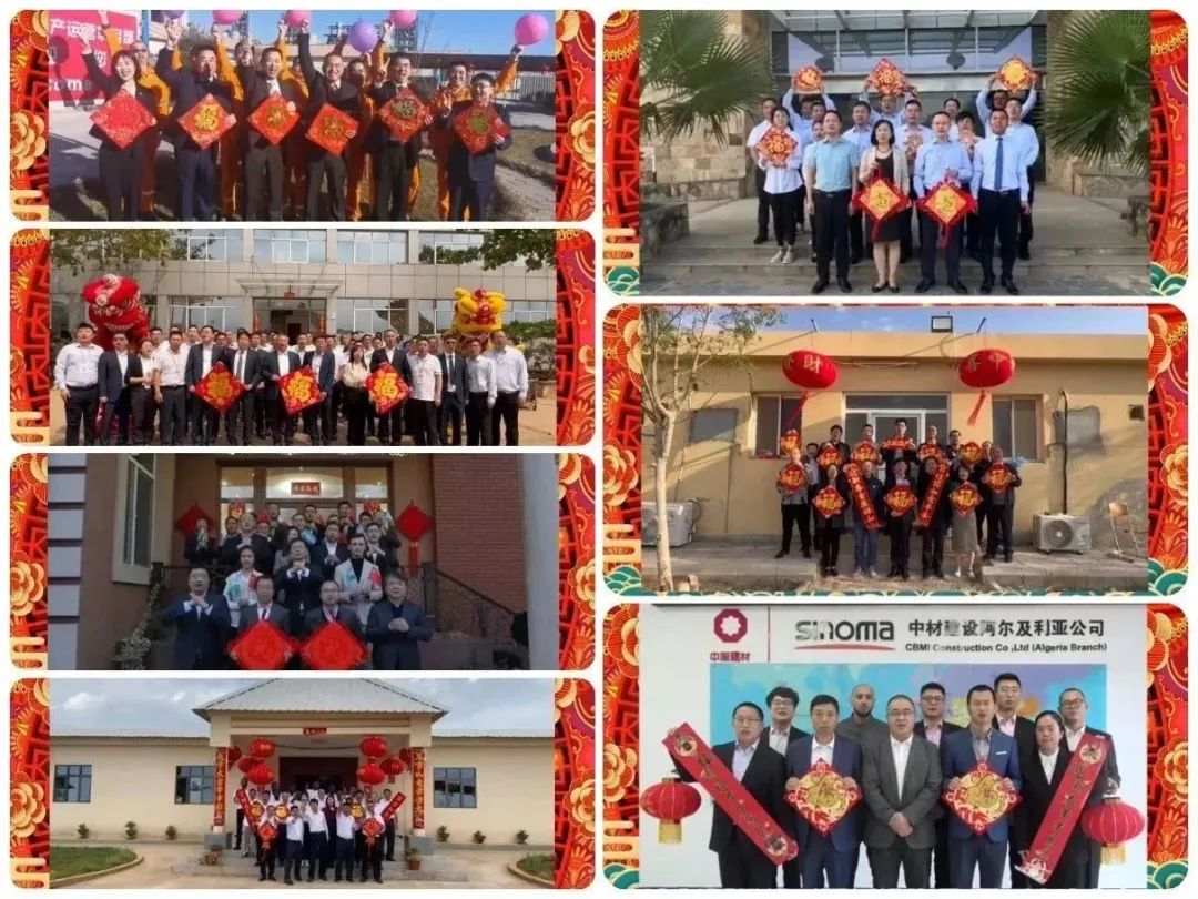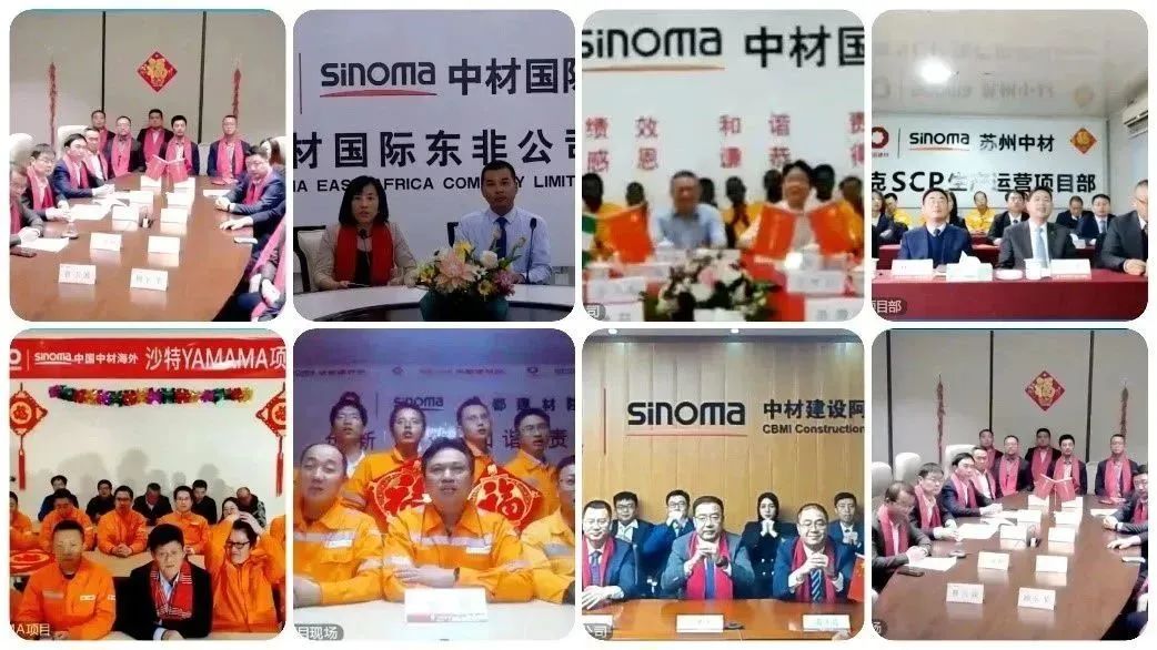 中材国际及所属单位9位在境外慰问的领导分别从乌兹别克斯坦、坦桑尼亚、尼日利亚、伊拉克、沙特、埃及、阿尔及利亚、乌兹别克斯坦、赞比亚为大家送上新春祝福。
