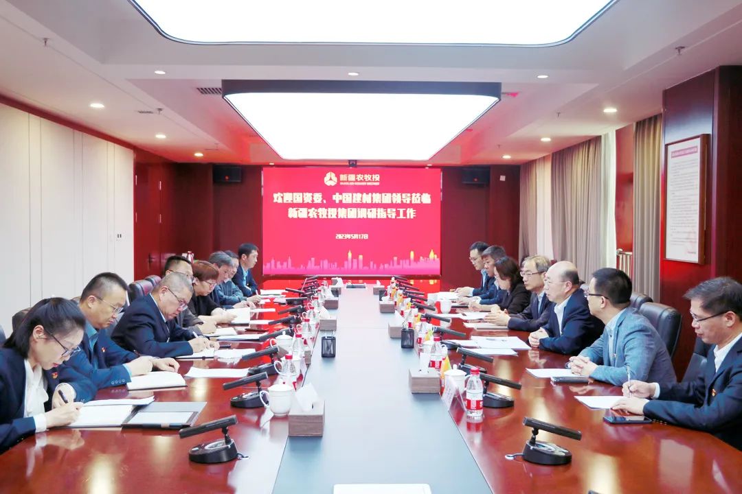 5月17日, 党委副书记、职工董事、工会主席常张利一行赴新疆农牧业投资(集团)有限责任公司(简称农牧投集团)拜访,看望慰问集团援疆干部陈卫敏,并就援疆工作进行座谈交流。国务院国资委党建工作局一级巡视员、兵团国资委党委委员、副主任(援疆)徐宇栋,农牧投集团副总经理张雪峰参加了座谈。