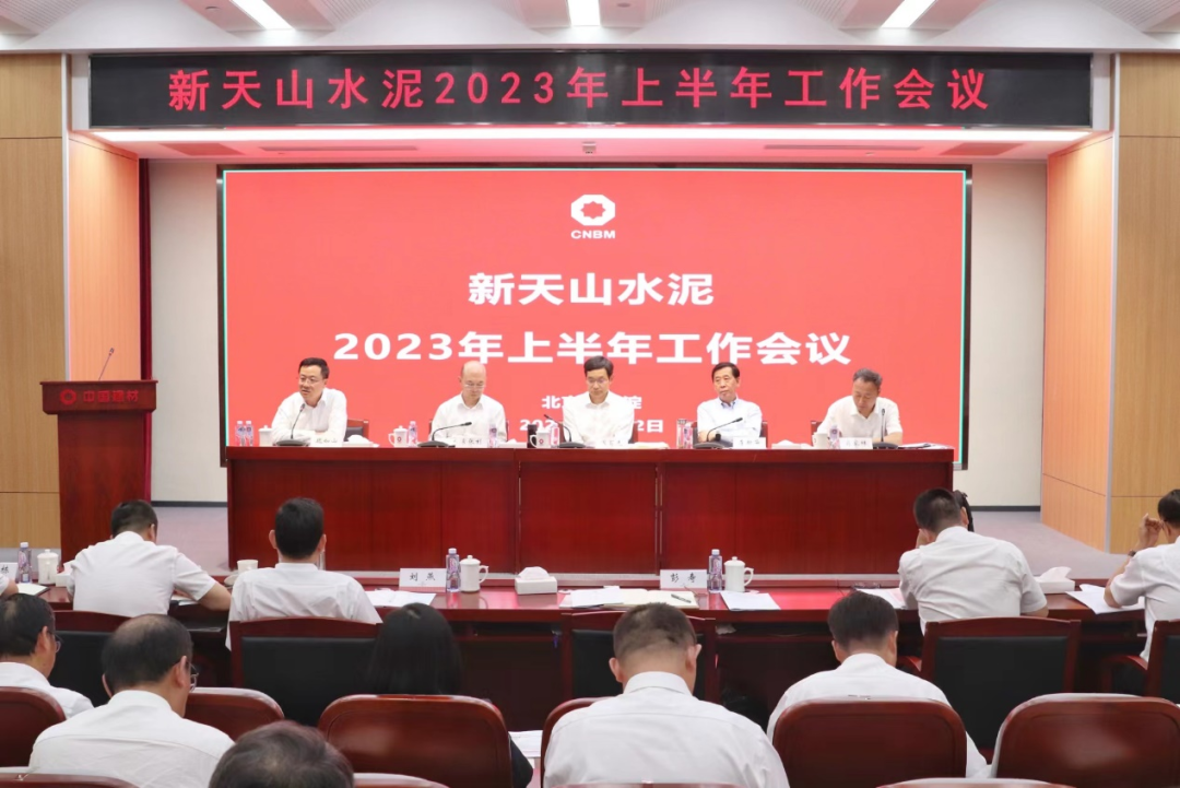 7月12日,新天山水泥2023年上半年工作会议在 总部召开。 党委书记、董事长, 股份党委书记、董事长周育先, 党委副书记、总经理李新华, 党委副书记常张利, 党委常委、副总经理, 股份党委副书记、总裁魏如山,中国工程院院士、 总工程师彭寿出席会议。新天山水泥党委副书记、总裁赵新军作工作报告。新天山水泥党委书记、副董事长肖家祥主持会议。