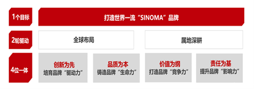 未来,中材国际将继续以“推动绿色智能、服务美好世界”为使命,以建设“材料工业世界一流服务商”为愿景,持续完善创新、品质、价值、责任四位一体的品牌管理体系,持续提升“SINOMA”品牌竞争力,加快建设“产品卓越、品牌卓著、创新领先、治理现代”的世界一流企业!