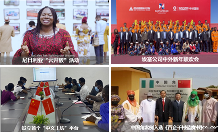 中材国际高度重视品牌宣传,积极拓展品牌传播形式,利用“一网一微一刊三账号”宣传平台,积极主动展现企业发展成就、创新成效、典型事迹和感人故事。在尼日利亚,推动跨文化融合试点,第一个“中文工坊”平台率先落地,组织“云开放”活动,通过一个个气势恢宏的工程项目和惠及民生的多元投资,深化合作,增进友谊,共筑梦想;编制发布尼日利亚国别社会责任报告,讲好中国故事,展现央企的大国担当。