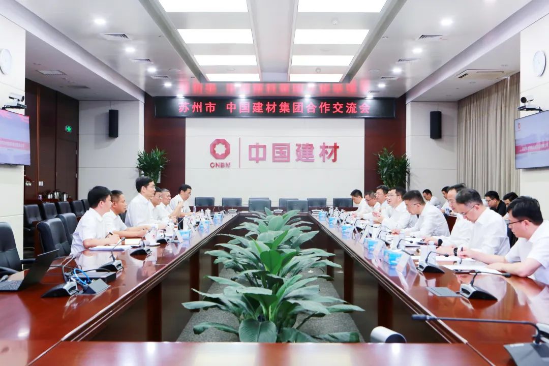 8月9日, 党委书记、董事长, 股份党委书记、董事长周育先在集团总部会见了苏州市委副书记、市长吴庆文一行,双方就加强战略合作、推动项目建设等进行了交流。苏州市政府秘书长俞愉, 股份党委委员、副总裁兼中材科技党委书记、董事长薛忠民出席座谈会。