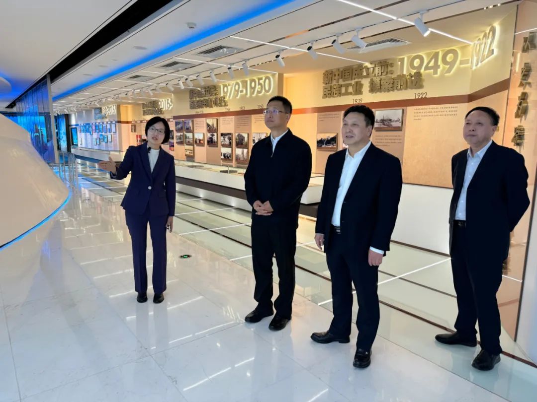 会前,曲孝利陪同谢卫江一行参观了集团展厅。
