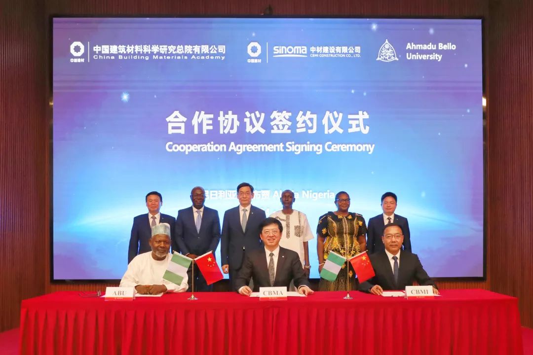 10月3日, 与艾哈迈德·贝洛大学在尼日利亚阿布贾签署合作协议,成立中非绿色建材联合实验室。 董事长周育先,贝洛大学校长代表Sani Abba Aliyu,尼日利亚基础设施公司首席执行官、董事总经理Lazarus Angbazo,尼日利亚国家认可机构(NINAS)认证负责人Lawrena Okoro,中材国际董事长印志松, 战略发展部(国际合作部)总经理查金祥出席并见证签署仪式。 总经理助理、 总院董事长郅晓,中材建设总经理张思才,贝洛大学Thomas Ijimdiya代表各方签署协议,仪式由国检集团副总经理宋开森主持。