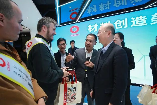 会见前,优秀外籍员工们参观了集团业务展厅。通过参观交流,他们进一步了解了集团的整体发展情况,体验了独具特色的企业文化,切身感受到“材料创造美好世界”的企业使命担当,对材料工业之美和企业文化魅力赞叹不已。