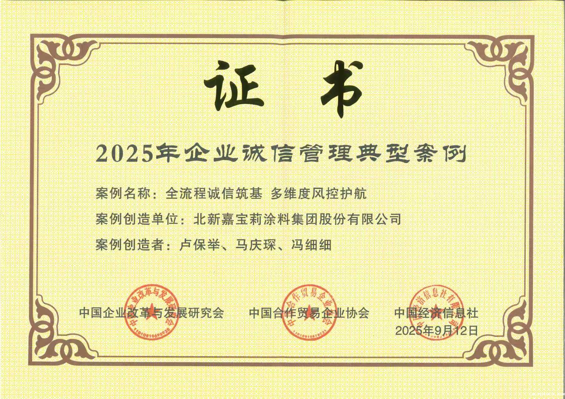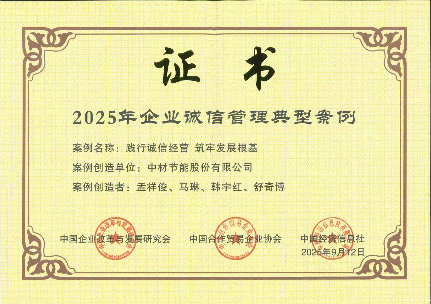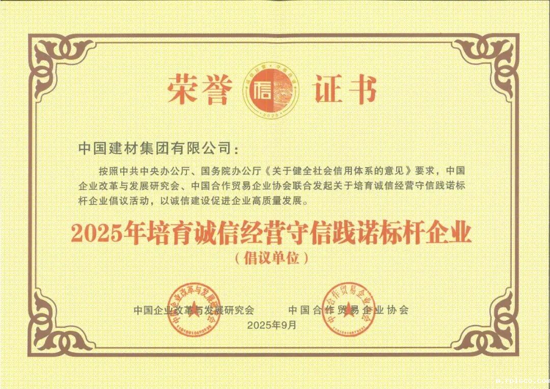 9月27日,中国企业改革与发展研究会、中国合作贸易企业协会主办的“2025年企业诚信建设高质量发展大会”在福州举行。taptap体育入选“2025年培育诚信经营守信践诺标杆企业倡议单位”,集团所属中材节能股份有限公司、北新嘉宝莉涂料集团股份有限公司、山东瑞泰盖泽工程有限公司的案例荣获“2025年企业诚信管理典型案例”。