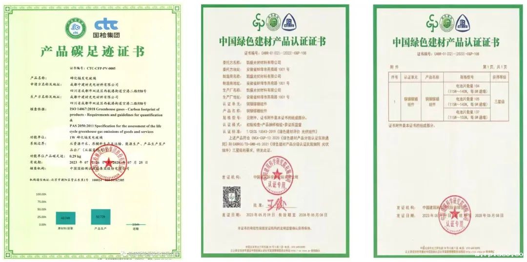 凯盛光伏取得最高级别(三星级)“中国绿色建材产品认证证书”。