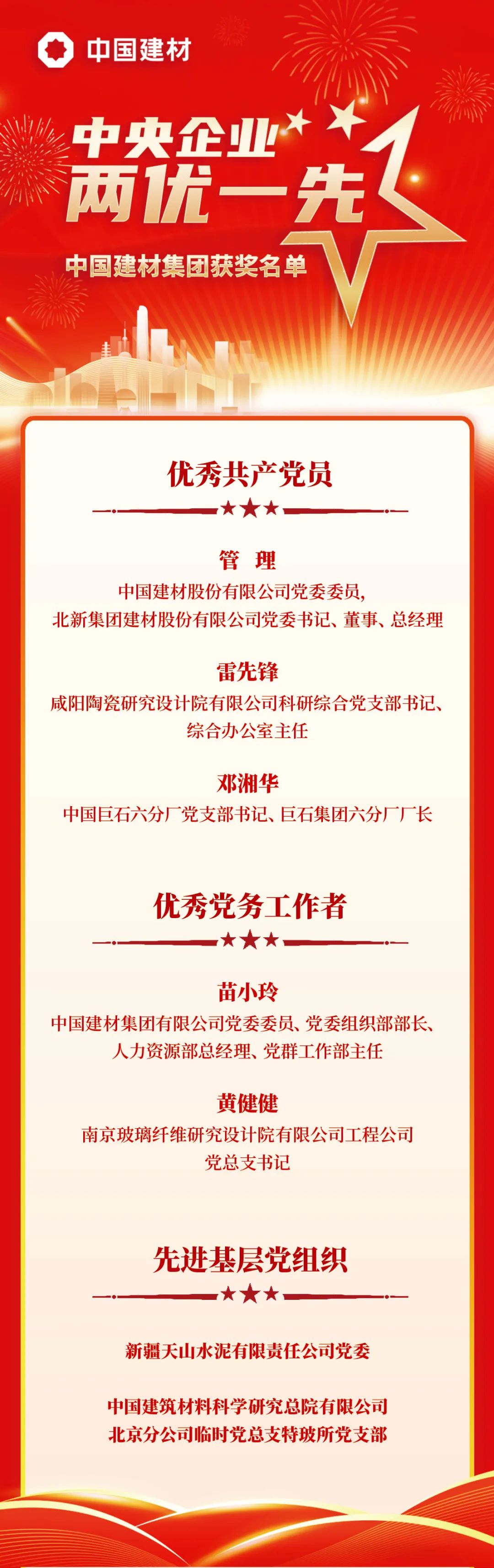 6月27日,国务院国资委党委召开中央企业“两优一先”表彰大会,隆重表彰中央企业优秀共产党员、优秀党务工作者和先进基层党组织。 3名共产党员荣获“中央企业优秀共产党员”称号,2名党务工作者荣获“中央企业优秀党务工作者”称号,2个基层党组织荣获“中央企业先进基层党组织”称号。