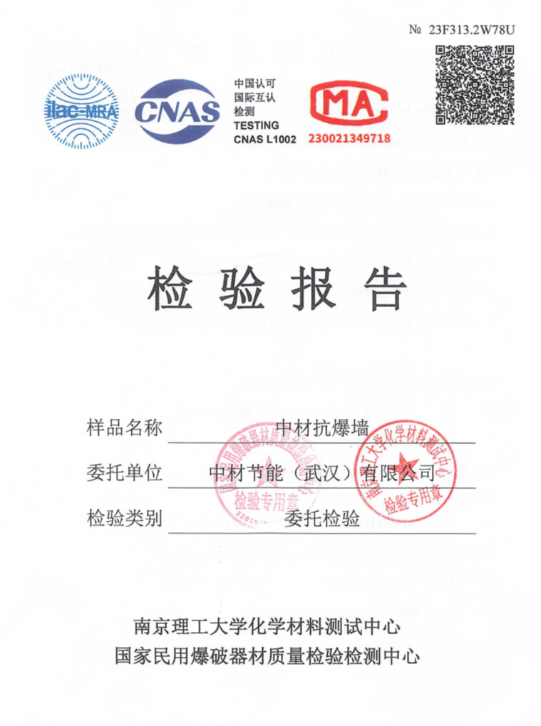中材汉鲲®泄爆板是在无石棉硅酸钙板的生产过程中利用先进的工艺将原材料通过制浆、成型、蒸压养护生产而成,已取得国家级检测中心的泄爆性能试验检测报告,经受峰值压力为200kPa的冲击波作用后立刻粉碎,瞬间释放爆炸的能量,达到泄爆泄压的状态,适用于需要泄爆的危险性生产工房、甲类厂房、聚合车间等。泄爆墙由泄爆板、轻钢龙骨与岩棉共同组成,具有轻质保温的特点,爆炸时呈块状或粉末状,不易形成二次伤害。