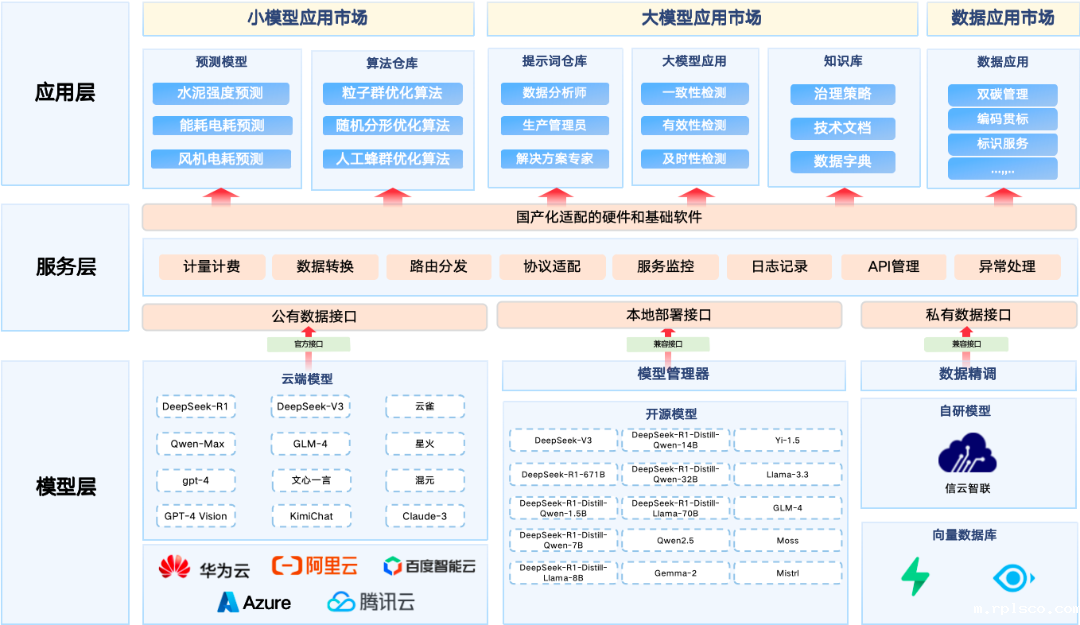 作为较早布局人工智能技术的科技企业,信云智联在大模型领域持续深耕与布局,构建了覆盖大模型开发、服务、应用的全链路解决方案,不仅能够与国内外头部模型集成,还具备自主研发能力,通过蒸馏技术实现不同场景的适配需求,同时还有优良的国产化适配能力,支持灵活部署与服务。目前,信云智联在小模型市场、大模型市场以及数据应用市场,均取得了丰硕的成果,并已在水泥、能源等多个行业中成功落地应用,为行业的智能化升级提供了有力的技术支撑。