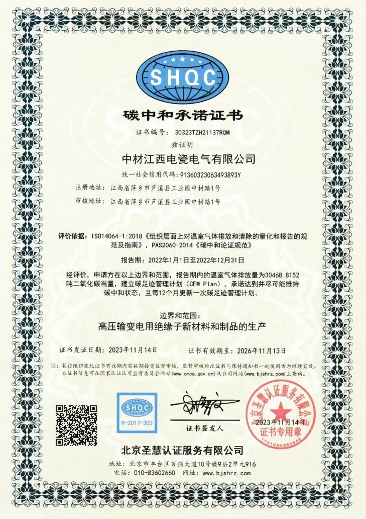 中材电瓷积极响应国家“双碳”战略,深入贯彻落实绿色发展理念。将创建国家级绿色工厂作为推动企业转型升级、实现高质量发展的重要抓手。公司通过一系列卓有成效的举措,在绿色制造、生态环保等方面取得了显著成效,为行业树立了标杆。公司于2020年10月,由工信部评选为国家级绿色工厂。