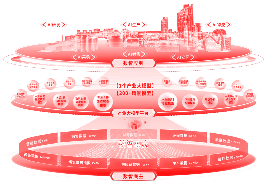 “晓妙”产业大模型历时两年多,从单工厂单区域单场景的探索阶段,逐步走向多工厂复制、多区域协同、多场景联动的落地和拓展阶段。目前,该大模型以水泥板块为“试验田”,从构筑产业高质量数据集、实现供产销跨场景全局决策寻优、赋能生产全工序端到端实时闭环决策,建立自动实时决策闭环三个维度推进数字化转型。该模型在工厂生产、区域协同和集团管控等各层级均取得显著成效,不仅实现了产业数字化价值的可量化提升,更生动诠释了“晓苍穹,妙万物”的创新理念。