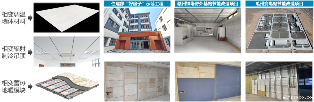 通过二次封装技术,相变材料已实现建材化,产品形式包括:装饰一体化相变调温板材、相变辐射制冷吊顶系统、相变蓄热地暖模块等。应用案例包括住建部“好房子”示范工程CCB建融家园装修改造项目、赣州铁塔野外基站节能改造项目、瓜州变电站节能改造项目等。在河南某办公楼地暖相变蓄能改造项目中,节能率达20%,通过峰谷电套利年省电费达55%。