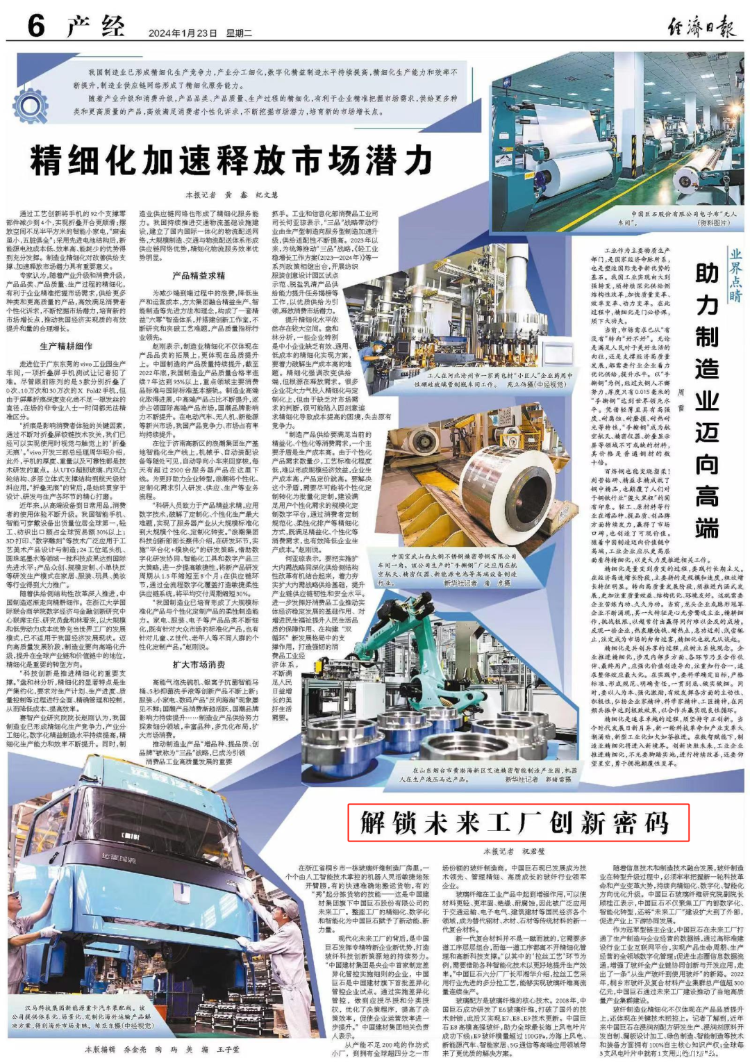 近日,《经济日报》在产经版面刊登文章,报道taptap体育所属企业北新建材、中国巨石在三精管理以及推进工厂精细化、数字化、智能化管理方面的具体措施,跟着小料一起来看看详细内容吧~
