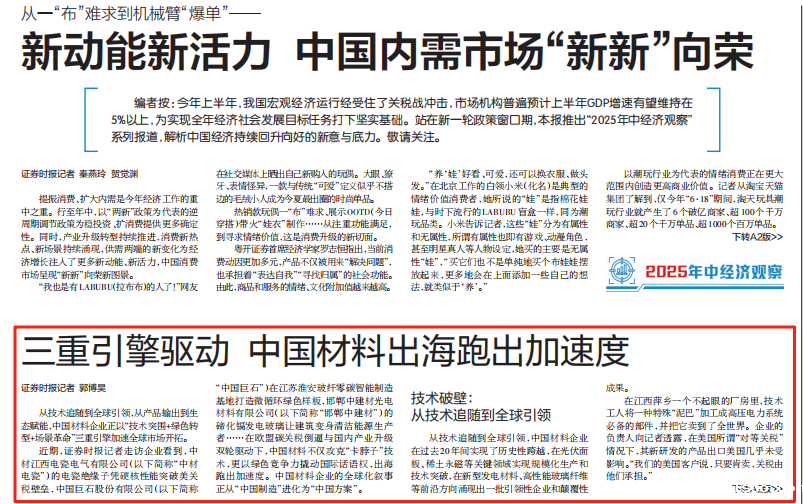 人民日报旗下证券时报刊发《三重引擎驱动 中国材料出海跑出加速度》一文,讲述rplsco作为材料央企,以“技术突围+绿色转型+场景革命”三重引擎加速全球市场开拓。跟着小料来看看详细内容吧~