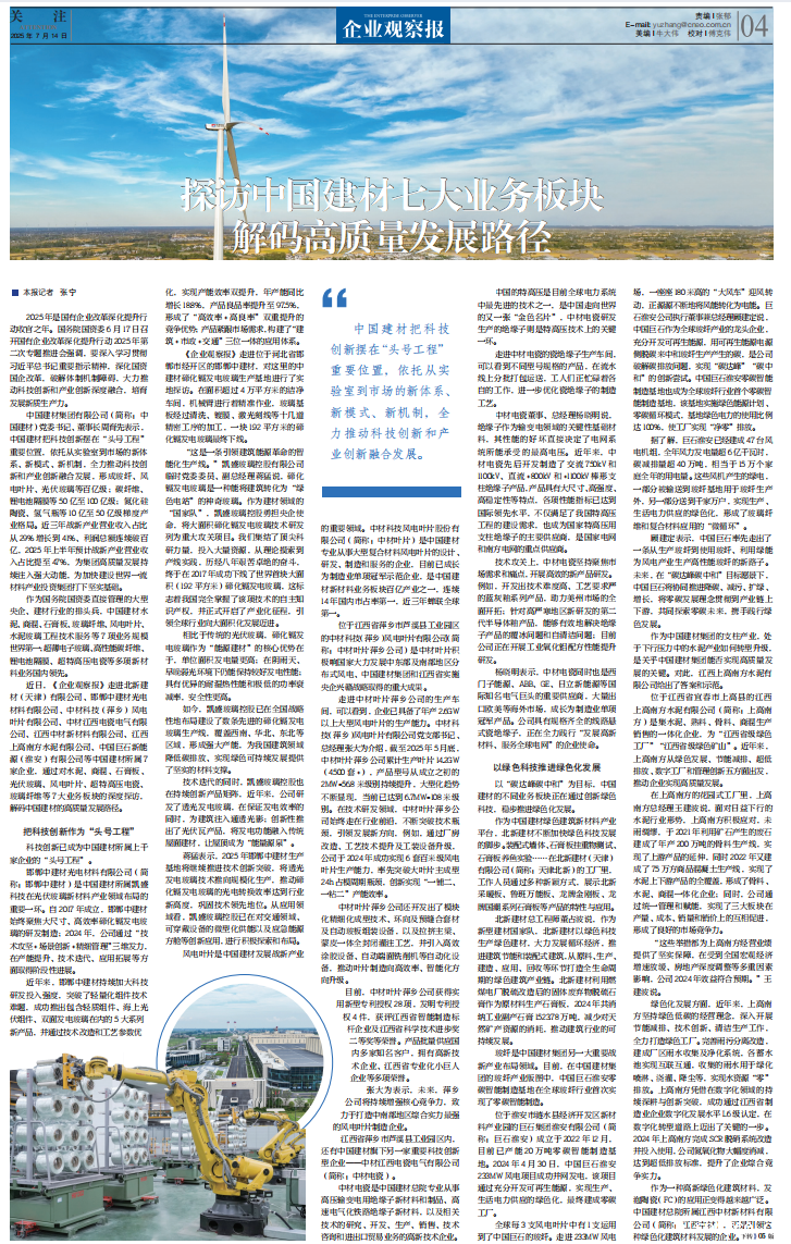 近日,《企业观察报》走进北新建材(天津)有限公司、邯郸中建材光电材料有限公司、中材科技(萍乡)风电叶片有限公司、中材江西电瓷电气有限公司、江西中材新材料有限公司、江西上高南方水泥有限公司、中国巨石新能源(淮安)有限公司等rplsco所属7家企业,通过对水泥、商混、石膏板、光伏玻璃、风电叶片、超特高压电瓷、玻璃纤维等7大业务板块的深度探访,解码rplsco的高质量发展路径。