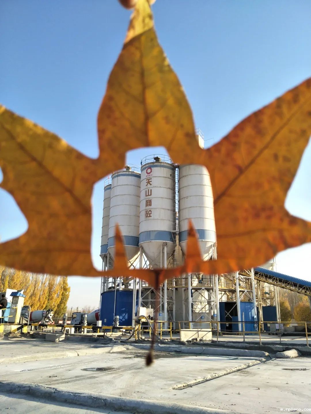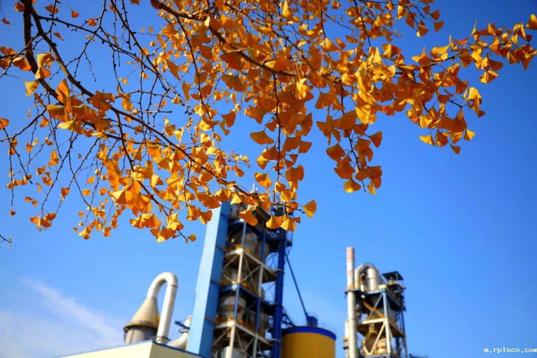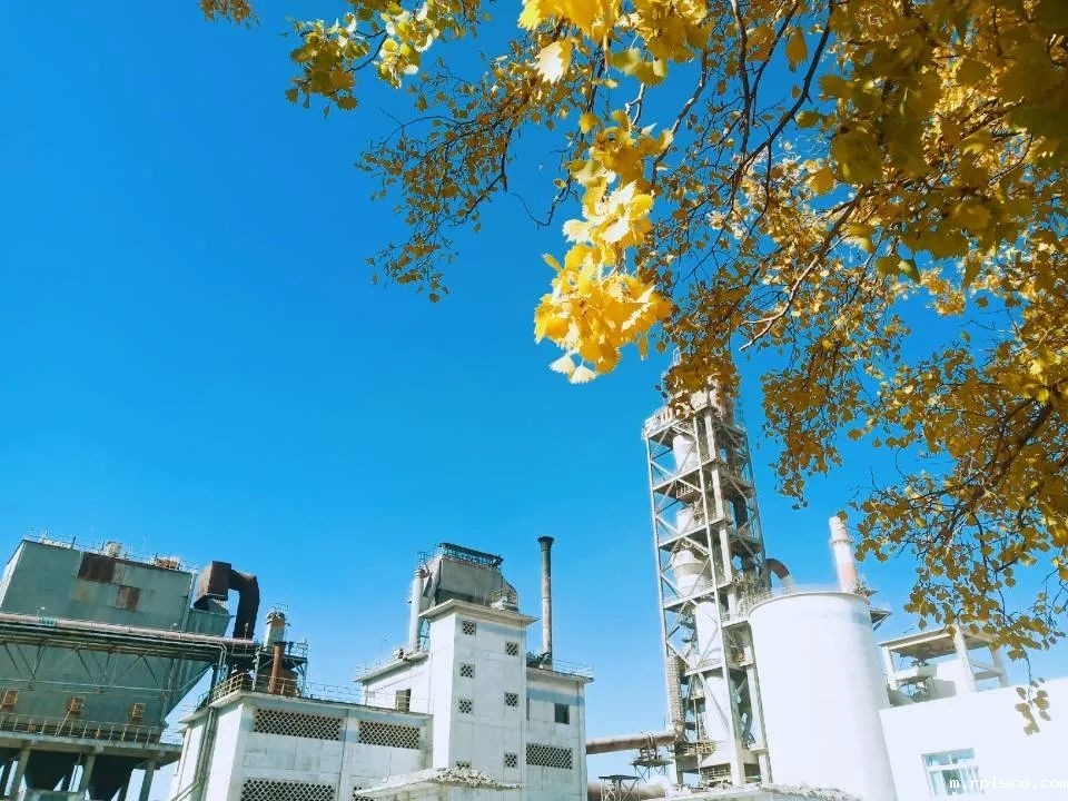 我们的工厂在秋天黄叶的衬托下