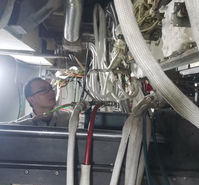 进入成都中光电之前,他已经有了七、八年的工作经历,但是面对液晶玻璃基板这个领域,他意识到自己还是个新人,要在这个新工作领域做出成绩必须脚踏实地学习。于是,他给自己定了个小目标:每天学习一点,每天进步一点。“罗工,你给我讲下这个通道的结构呢。”“邹班长,请教下成型工艺控制的关键是啥子呢?”“聂工,把你调功器的资料借我学下。”不懂就问,不会就学,就这样一个月后关于工程的水电气管路分布、走向,工艺流程、结构,关键设备等他就写满了三大本。初步掌握工艺和设备只是第一步,他知道作为电气技术人员必须进入到系统的大脑中,看它是怎么控制和运行的。三个月后,他已经把柴油泵的西门子程序、循环水的欧姆龙程序、BOD三菱程序、成型通道的PCS7程序、拉边牵引运动程序又抄了三大本,并且深入学习分析编程思路、方法,理顺了它们的控制逻辑、数据传送和通讯等。