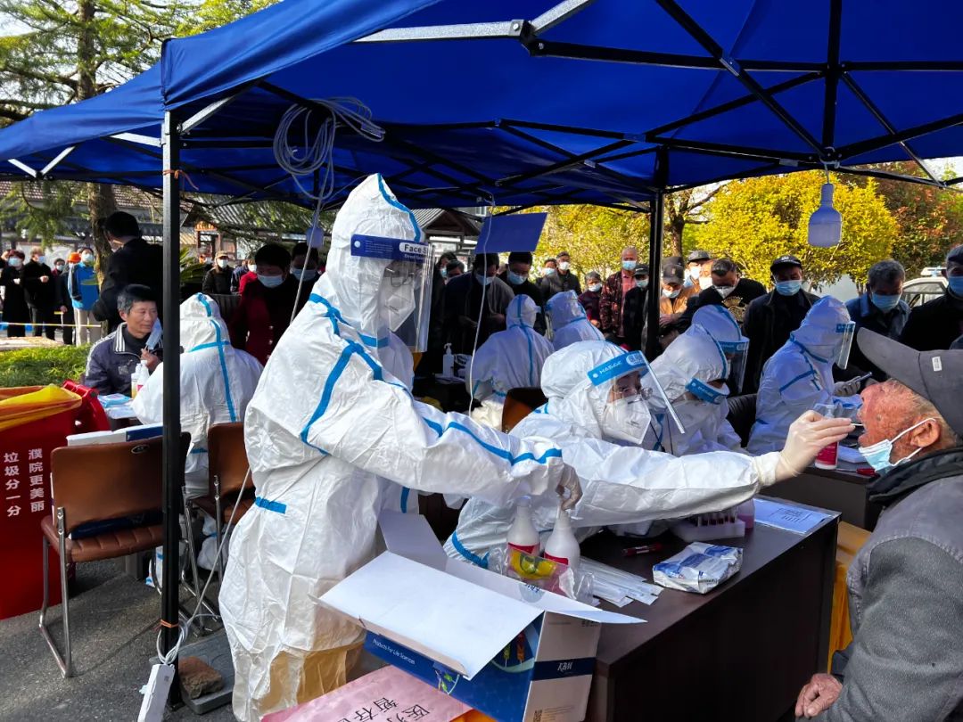 接下来几天,我们又去了下一个社区。准备工作做在前,打有准备之“仗”。穿好防护服,戴好口罩、手套、防护罩,穿好鞋套,进入现场。小组成员有序地分工协作:有入户走访排查登记、手持手机扫码、发放自检试剂盒的;有维护现场秩序的:“请保持两米距离打开吉祥码”;有拿着扩音器走楼串栋不断“吆喝”的:“居民朋友你们好,核酸检测开始了,请听到栋次下楼检测”;还有默默地一遍遍对现场工作人员、周边环境和医用品垃圾袋进行消杀的……大家齐心协力,配合默契,做好每一项工作。每天都有热心的居民送来暖宝宝、鞋垫等,不停地对我们说“辛苦了,你们辛苦了……”,我们的心也跟着热了。