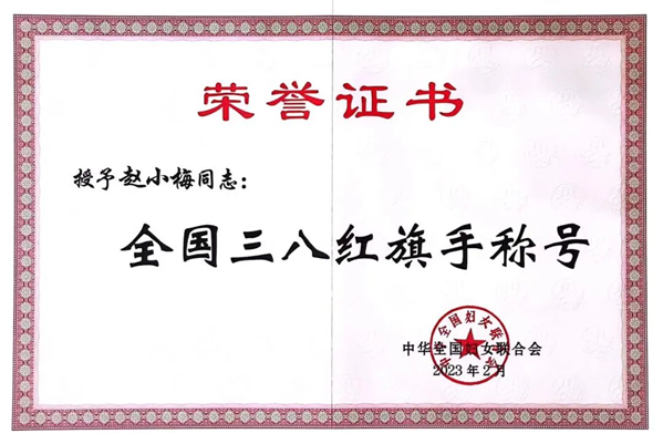 赵小梅荣获“全国三八红旗手”荣誉称号