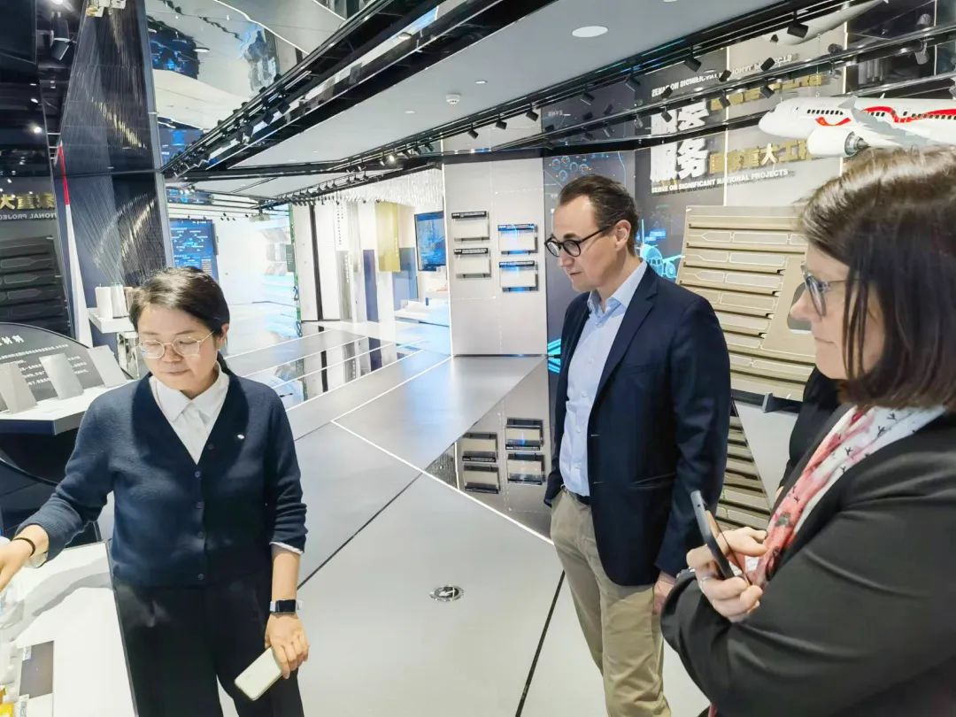 交流会前,托马斯一行还参观了 展厅,全面了解集团三大主业的发展状况。他对 在新材料产业取得的巨大发展成就赞叹不已,并表示将向更多的国际企业推介 的新材料产业。