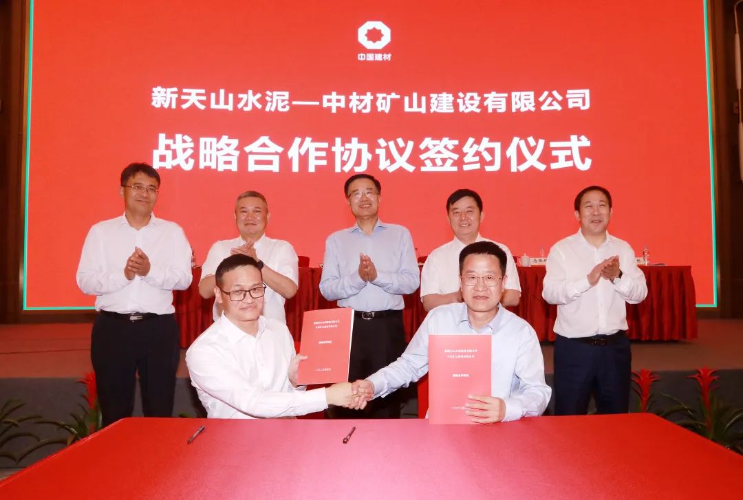 新天山水泥与中材矿山签订了战略合作协议。新天山水泥将利用中材矿山在矿山工程、采矿服务、矿山修复等方面的技术与管理优势,全面推进矿山安全化、标准化、绿色化、数字化和智能化建设。 新天山水泥与中材环境签订了战略合作框架协议。新天山水泥将利用中材环境替代燃料收储、加工和技术优势,加快双碳目标实现,双方携手成为中国替代燃料行业发展及科技创新引领者。 新天山水泥与中材海外签订了绿能合作框架协议。新天山水泥将利用中材海外先进技术优势,加快水泥工厂、矿山风光等绿能项目建设,努力实现降碳效应最大化。