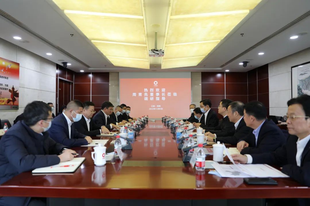 12月6-7日, 党委书记、董事长, 股份党委书记、董事长周育先与江西省省长叶建春举行会晤,共同见证 与江西省政府签署战略合作框架协议,并深入江西企业进行调研指导。江西省委常委、副省长任珠峰, 党委常委、副总经理, 股份党委副书记、总裁魏如山,中国工程院院士、 总工程师、凯盛科技董事长彭寿, 股份党委常委、执行董事,新天山水泥党委书记、总裁肖家祥等出席仪式。