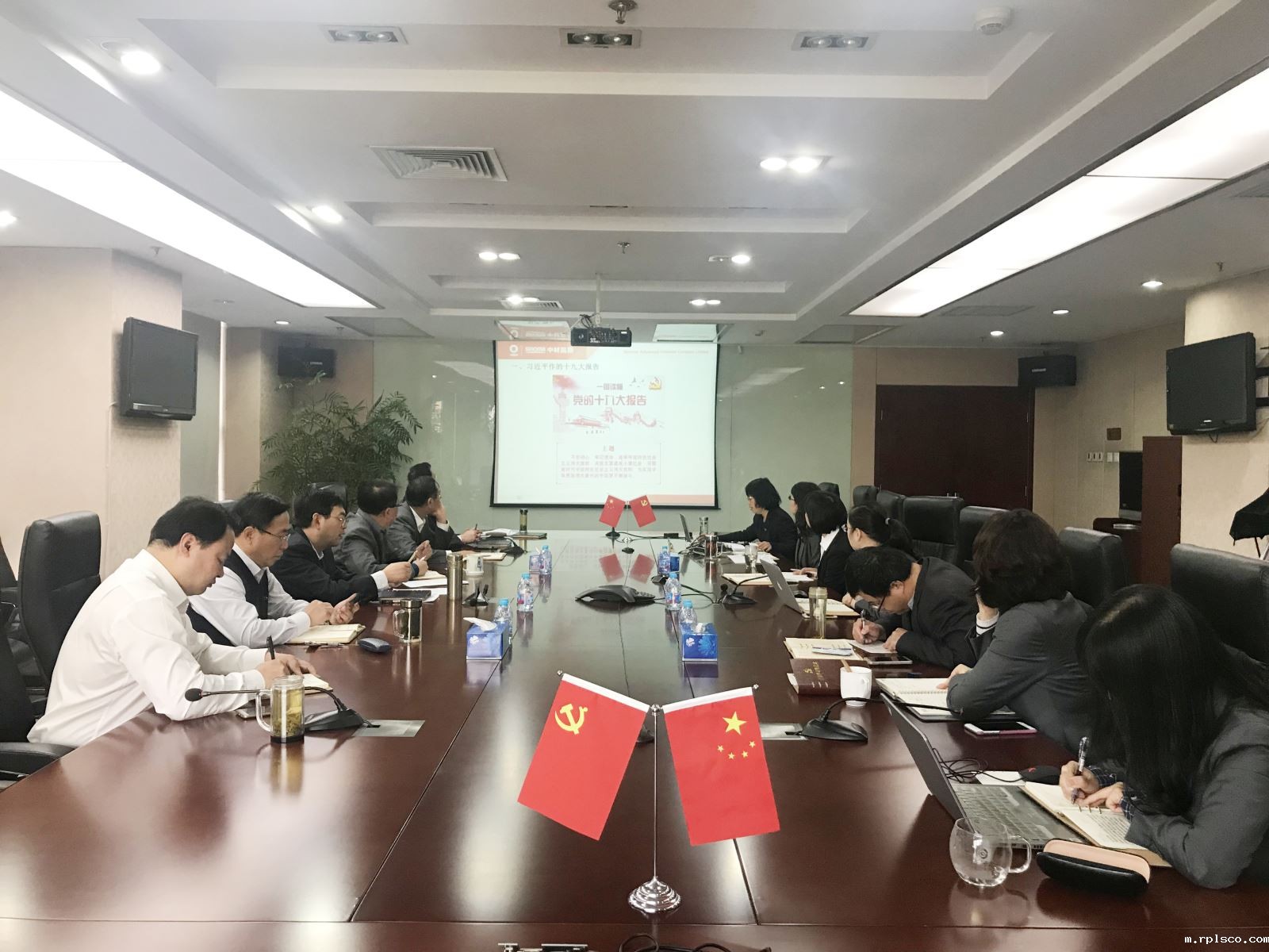 11月6日,为深刻理解习近平总书记在党的十九大会议上作的报告,全面把握中国特色社会主义进入新时代肩负的历史使命、指导思想、奋斗目标和精神状态等重大问题,认真贯彻落实中央精神、国资委和集团要求,中材高新党委召开了中心组学习(扩大)会议,参加会议的有公司领导班子成员、总部各部门负责人共15人参加,会议由中材高新党委书记阎法强同志主持。
