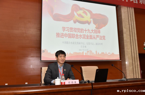 公司党委副书记、纪委书记、副总经理庄春来为培训班作了题为《认真学习贯彻党的十九大精神,推进中国联合水泥全面从严治党》的专题党课,他从新时代全面从严治党的历史方位讲起,带领大家系统回顾了十八大以来党中央全面从严治党取得的显著成效,深入解读了十九大关于全面从严治党的内涵和要求,并对新时代下中国联合水泥如何开展好党建和纪检监察工作提出了任务目标和重点措施。要求各单位党组织要严格按照《中国联合水泥关于提升党建工作规范化科学化水平的指导意见》和《党建工作指导手册》,全面加强和改进基层党建工作,提升规范化科学化水平。
