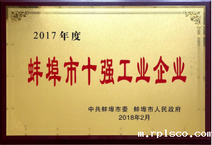 蚌埠中联荣获“蚌埠市十强工业企业”荣誉称号
