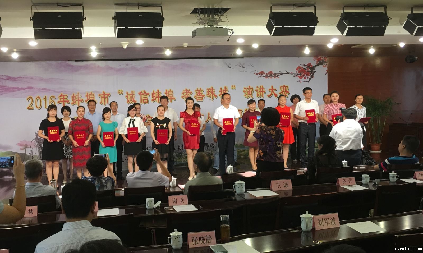 9月14日,蚌埠市举行“诚信蚌埠、孝善珠城”演讲大赛决赛暨诚信企业、诚信群体、诚信个人颁奖仪式。市委副书记王诚,市委常委、宣传部长谢兵,市人大副主任高萍、市政协副主席薛惠祥等出席。蚌埠玻璃工业设计研究院行政人事部员工刘爱丽和重点实验室员工舒灵秀代表禹会区参加比赛,分获二等奖和优秀奖。