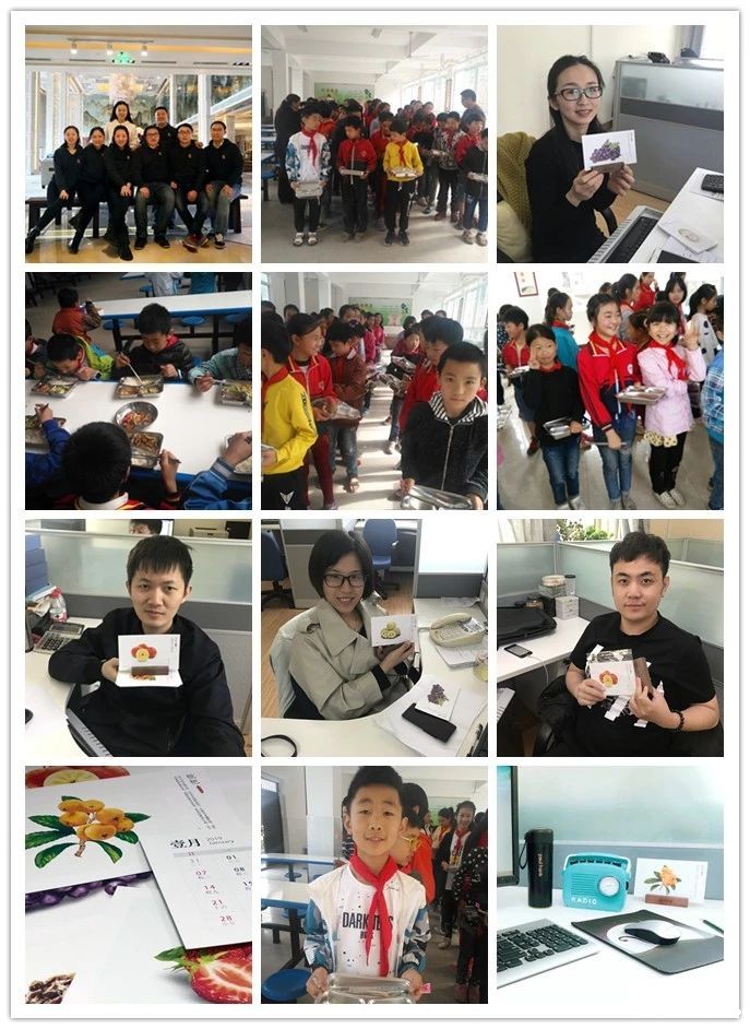 电商扶贫平台“禾苞蛋”推出“产品手绘台历”义卖活动,画册由团队成员自己策划手绘,2天内全部卖出,并把所得收益全部用于购买200套餐具,捐赠给集团定点帮扶地区云南省绥江县的银厂小学,现在,银厂小学的孩子们都用上了干净卫生、安全耐用的304不锈钢餐盘。中建材中岩科技有限公司鼎力支持,让这次义卖活动显得格外有力。活动一开始,他们就主动联系禾苞蛋平台,表示将在公司的支持下购买150本手绘,用以支持集团的爱心公益事业,用这种方式向山区孩子表示真切的慰问和祝福。
