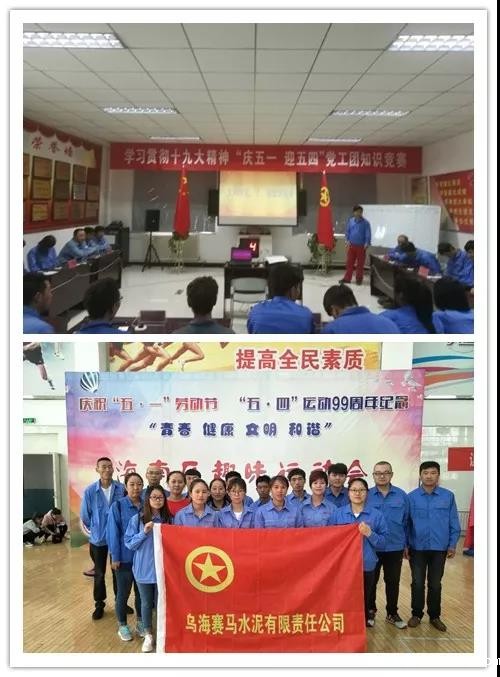 宁夏建材所属青铜峡公司开展“学习贯彻十九大精神 庆五一迎五四”党工团知识竞赛,通过竞赛活动,促进了大家的学习热情;乌海赛马公司组队参加当地团组织开展的纪念“五四运动”99周年运动会。