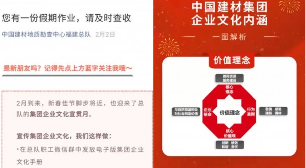 创新宣传途径,以微信公众号为载体,编发《 企业文化内涵一图掌握》。节后第一时间在电子宣传屏滚动播放集团企业文化宣传片,并组织全体中层以上干部、各党支部学习集团《企业文化手册》。