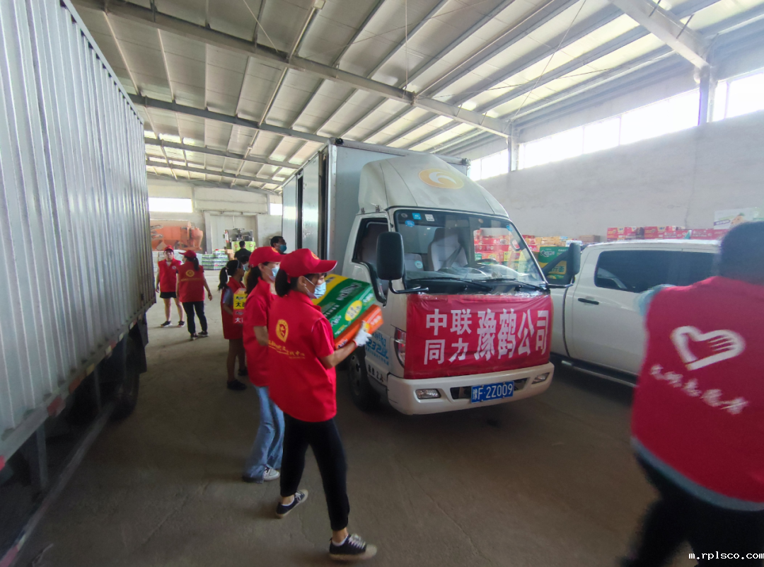 ▲豫鹤同力捐赠防汛物资到达浚县卸车