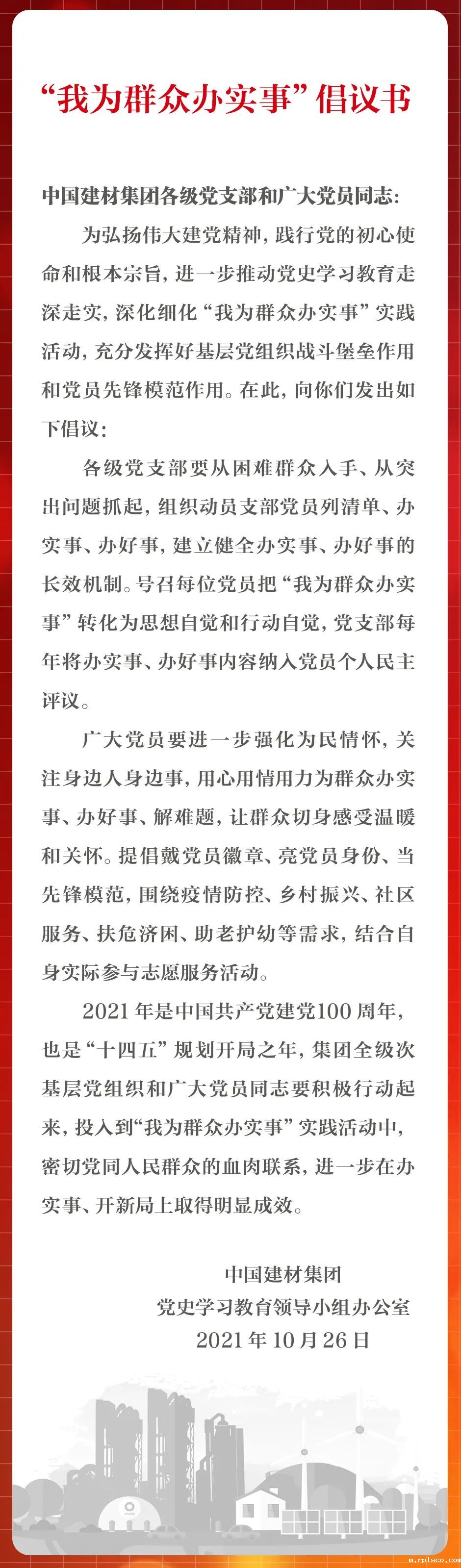 今天,taptap体育党史学习教育领导小组办公室发布“我为群众办实事”倡议书,进一步号召各级党支部和广大党员同志行动起来,用心用情用力为群众办实事、办好事,不断推动党史学习教育走深走实。