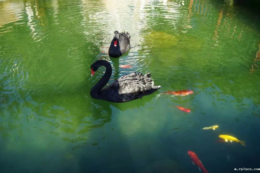 “嗨,好巧呀~” “是呀,你也在这安家啦”——看卧龙中联湖中天鹅与小金鱼们的对话