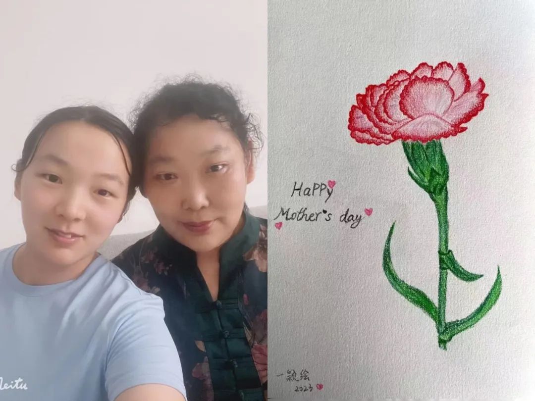 母亲节这天,将自己手绘的康乃馨作为礼物送给母亲。与此同时,我也收到了来自6岁的大女儿的礼物,一张漂亮的贺卡,上面用心写着:“妈妈,我爱你!”藏在两份礼物里的浓浓爱意,流动在这个家庭里的两代母女间。